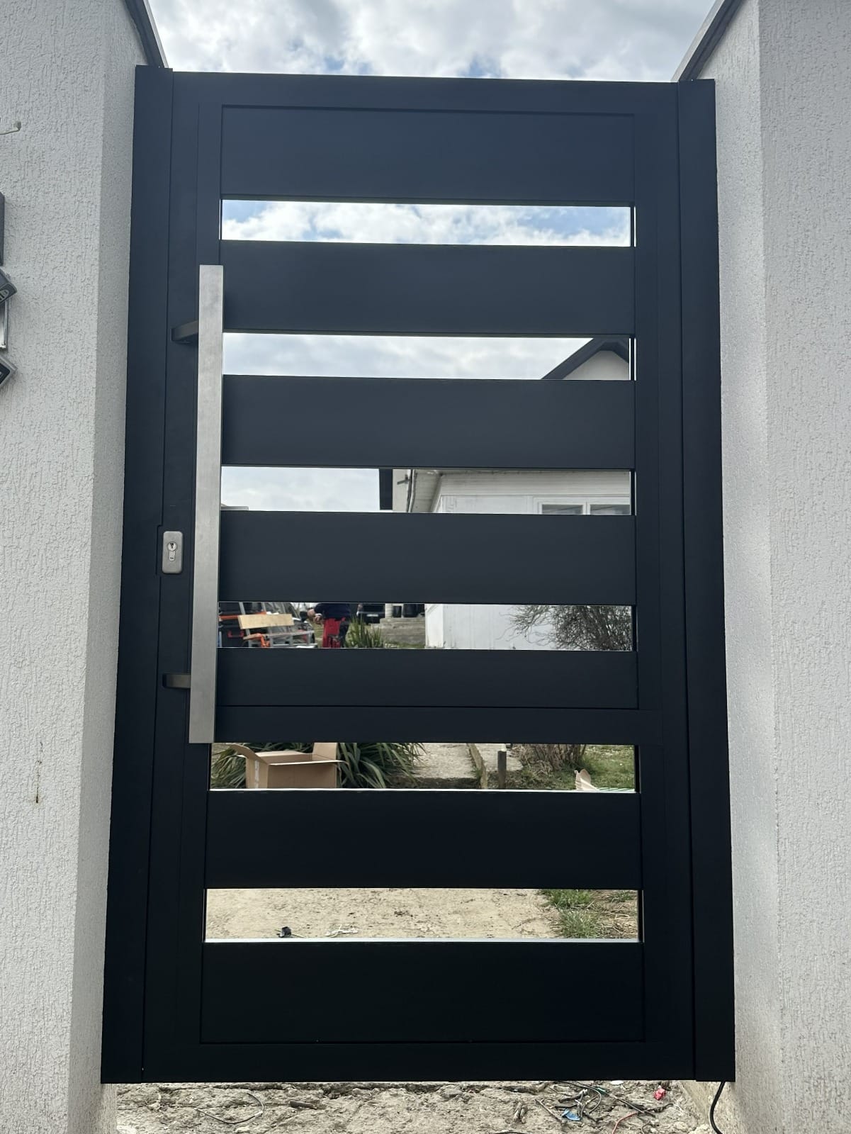 Această poartă pietonală din aluminiu nu este doar un element funcțional, ci și un detaliu de design modern care pune în valoare întreaga proprietate. În plus, tehnologia smart integrată îți oferă control complet de la distanță și un plus de siguranță pentru tine și familia ta.